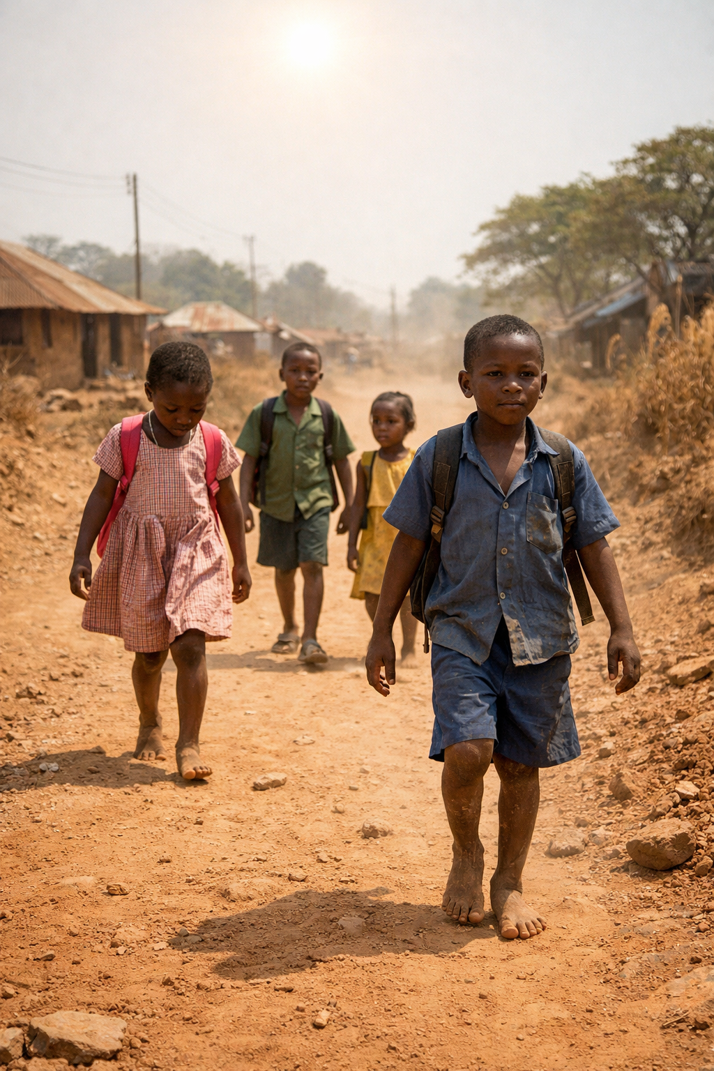 Each morning in communities like Obeagu/Ugwuaji and Akpugo Nkanu, Enugu State, little children wake before sunrise. Some begin the long walk to school on dusty roads under the hot Enugu sun, often barefoot or with worn-out sandals. Many leave home without breakfast, carrying only hope in their hearts.